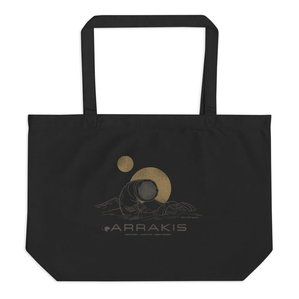 Featuring a bold design inspired by the desert planet, the Dune Arrakis Tote Bag is perfect for carrying all your essentials. Whether for shopping or beach days, this tote combines practicality with a striking Arrakis graphic!