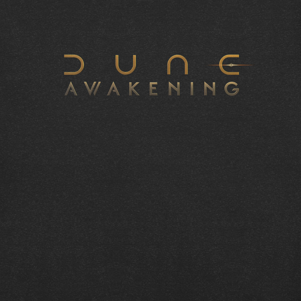 Step into the world of Arrakis with the Dune: Awakening Logo T-Shirt. Featuring the official game logo front and center, this bold tee is perfect for any fan of the survival MMO. Sit back, relax, and gear up for the spice wars!