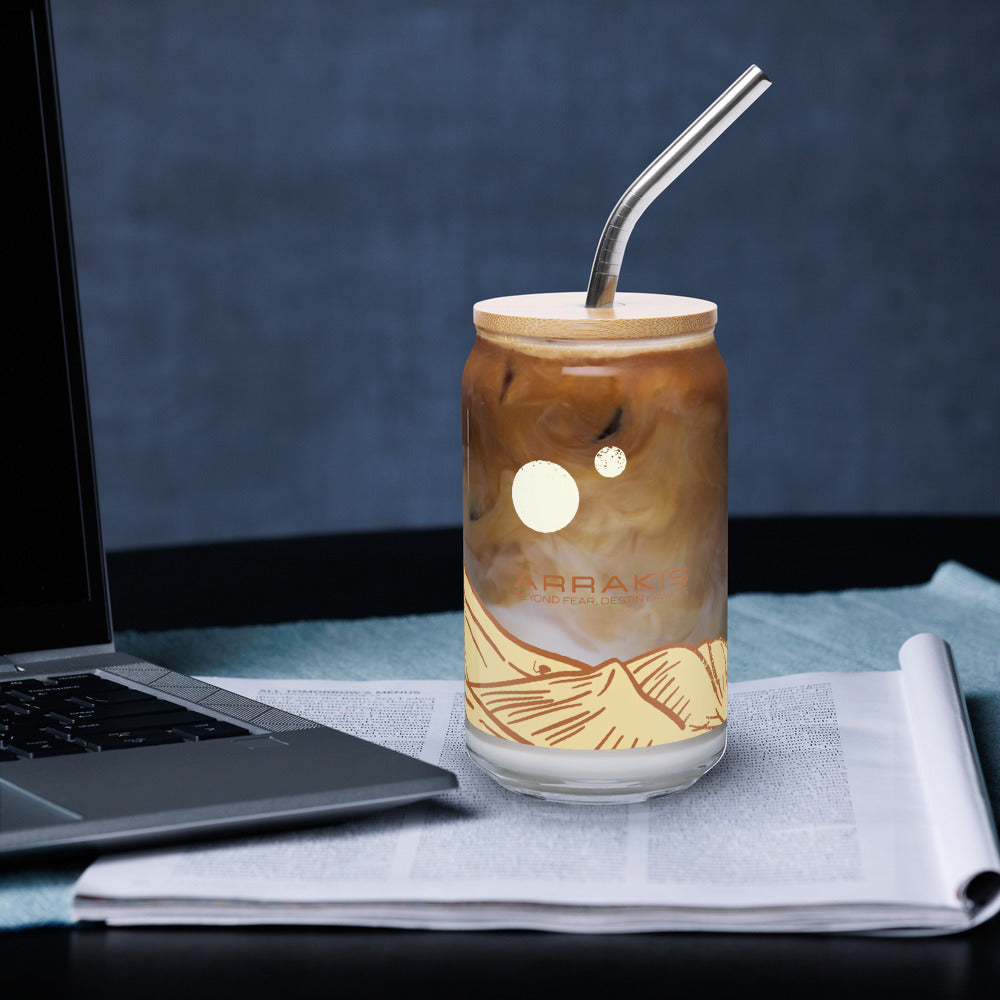 Embrace the epic journey of Dune with the "Beyond Fear, Destiny Awaits" Can Glass. Perfect for fans of the legendary saga, this can-shaped glass features a bold design inspired by the profound themes of the Dune universe.