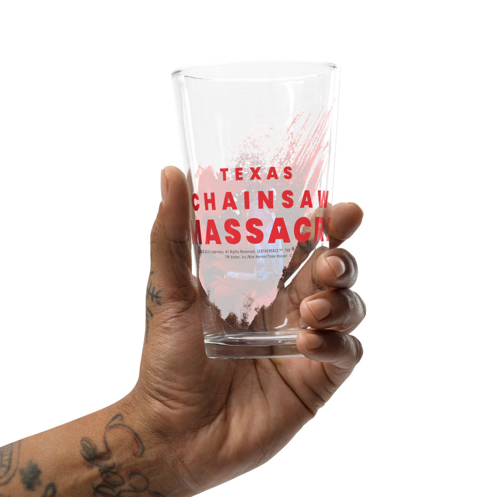 Elevate your horror movie memorabilia with the Texas Chainsaw Massacre Killer Motif Pint Glass. Featuring a chilling design inspired by the iconic slasher film, this pint glass showcases a striking motif of Leatherface's infamous chainsaw, capturing the essence of the terror that has captivated fans for decades.