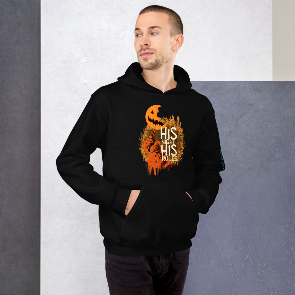 Stay cozy and spooky with the Trick 'r Treat His Night His Rules Hoodie, perfect for fans of the cult classic Halloween film. This hoodie features an eerie design that captures the essence of Sam's night of mischief, making it a must-have for horror enthusiasts.