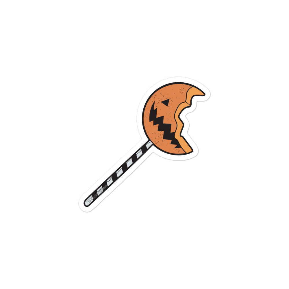 Get into the Halloween spirit with the Trick 'r Treat Lollipop Sticker, inspired by the iconic horror film. This high-quality, durable sticker features the famous lollipop design, complete with its sinister bite mark. Perfect for decorating your laptop, water bottle, or any surface that needs a touch of spooky fun.