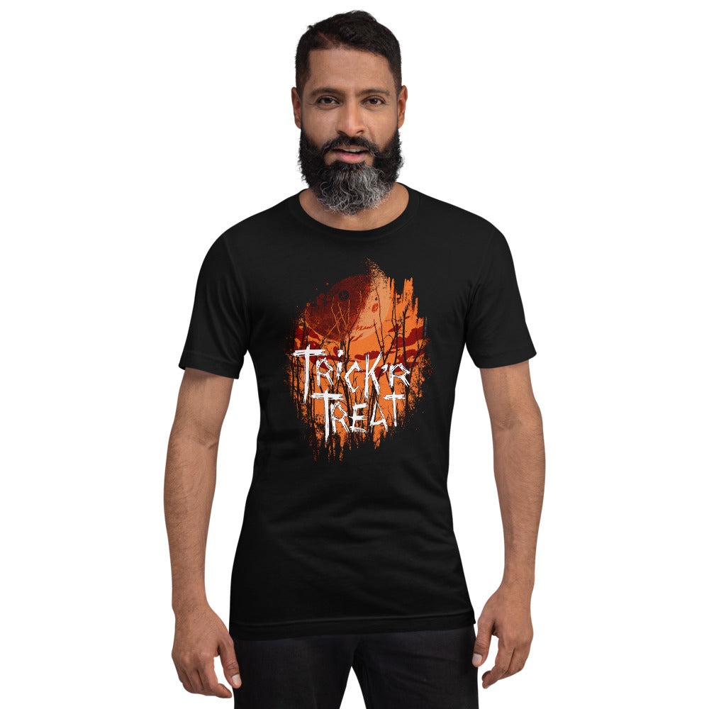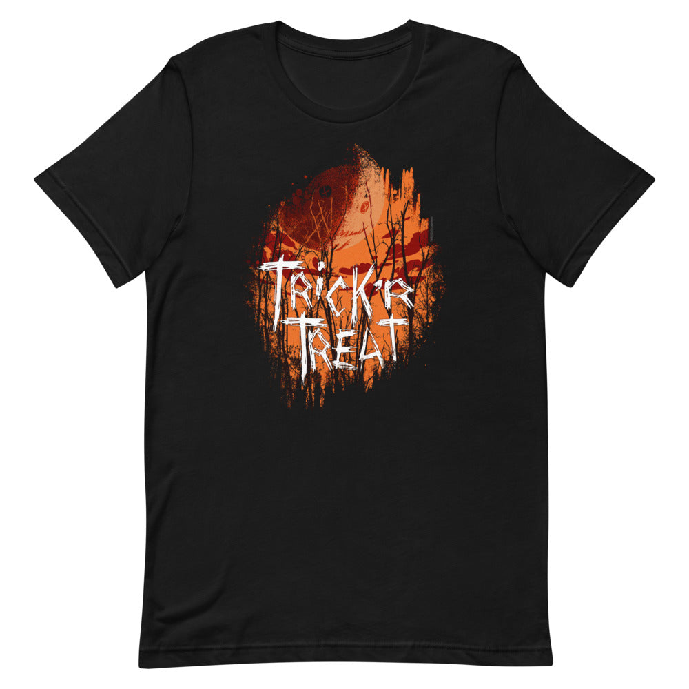 Get ready to embrace the spooky season with the Trick 'r Treat Moon Unisex T-Shirt. This must-have tee captures the eerie atmosphere of the iconic Halloween horror film, featuring a haunting forest design that showcases your love for the movie.